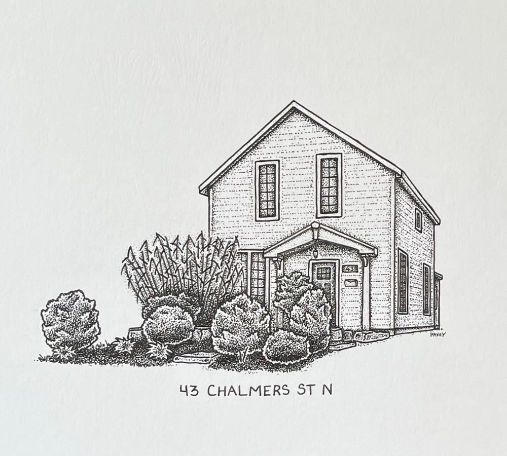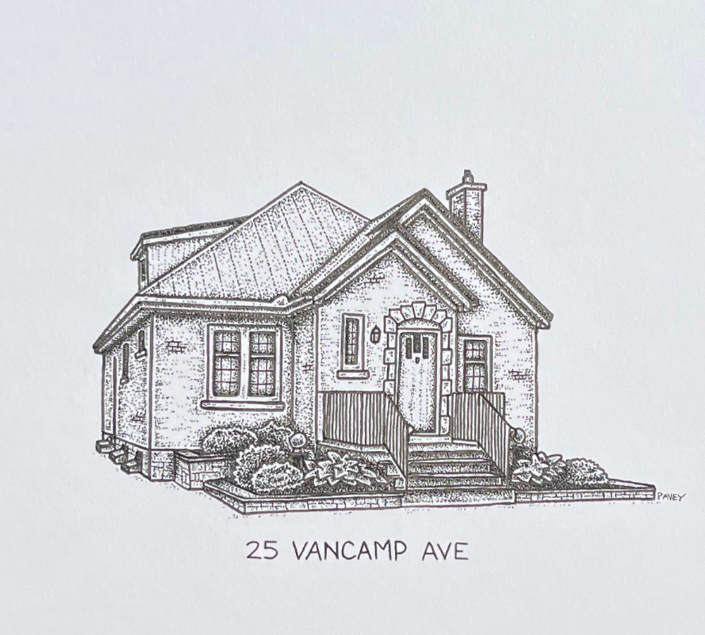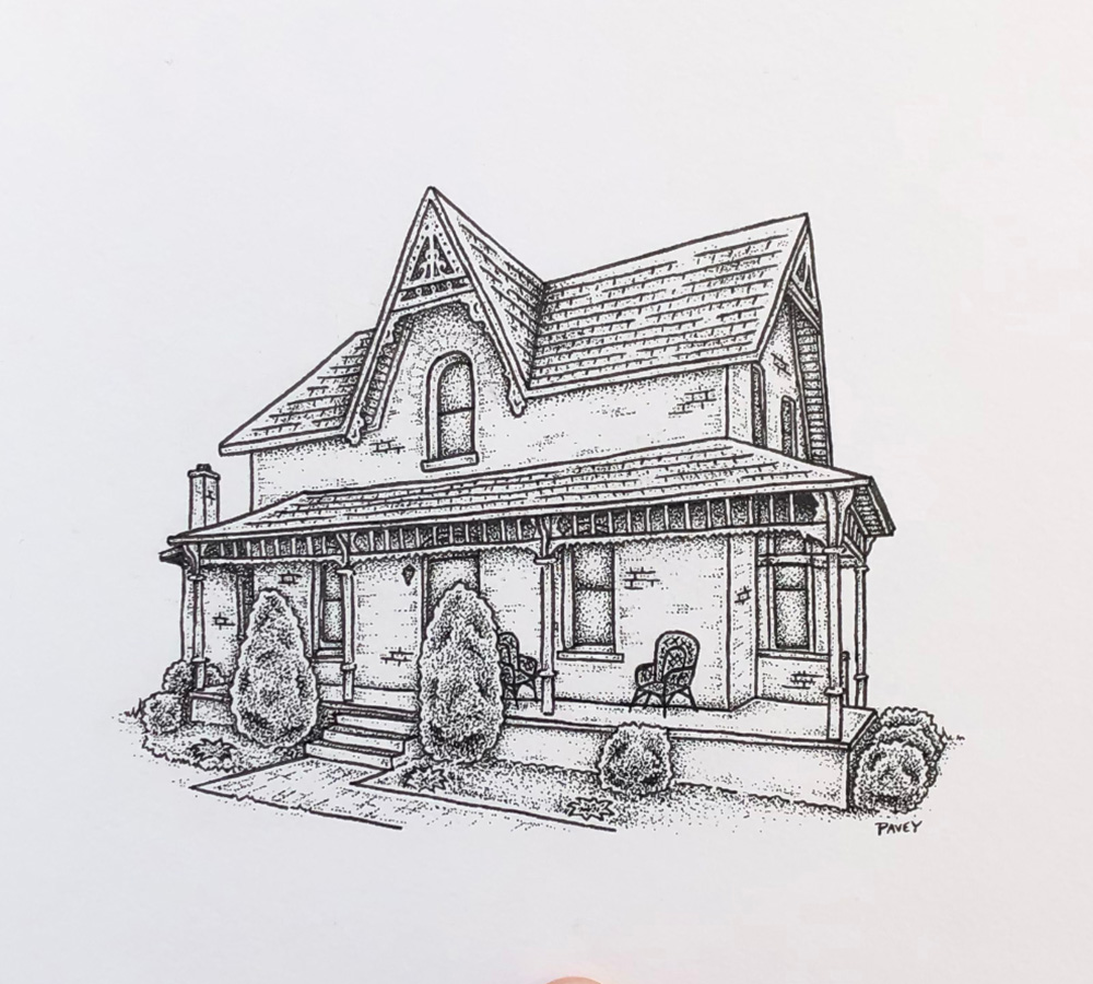 A few years ago, I found myself craving something simple and hands-on. I was inspired by artists who used stippling to draw whatever surrounded them — often wildlife like bison, elk, or mountain landscapes. At the time, my family was living in downtown Kitchener, and when I looked around, I saw beautiful century homes everywhere. So that’s what I decided to draw.